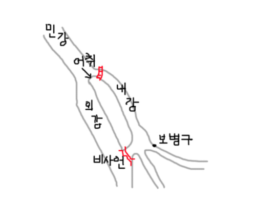 간단하게 말하자면 강을 여러 개로 나누어 하천의 흐름을 분산시킨 것이라 할 수 있다. 우선 민강을 어취(魚嘴)라는 제방을 통해 2개로 쪼갠다. 어취라는 이름에서도 알 수 있듯이 물고기의 주둥이와 같은 형태를 하고 있다.