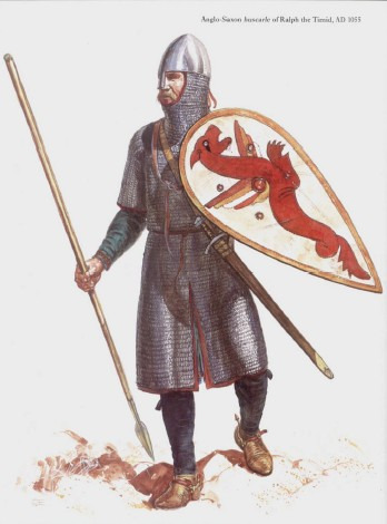 - 영국편 헤이스팅스 전투에서 영국 보병이 창을 들고 있다. ← 당시 잉글랜드 보병의 주무기는 하우스칼의 경우 양손도끼나 철퇴 혹은 투창,농민 출신의 징집병은 곤봉으로 무장했다. 하지만 진지하게 생각하고 그렸는지는 몰라도 테인이나 허스칼의 주 무장은 창이 맞고 도끼나 검은 부무장이다. 바이외 태피스트리에서도 해롤드측의 허스칼은 창으로 무장하고 있다. # # 또한 색슨계 징집병인 피르드들도 창이 가장 중요한 무기였다. 그런데 버날드 로 몽고메리의 《전쟁의 역사》를 보면 노르만 기사들을 쓰러뜨린건 도끼 부대라고 나온다.