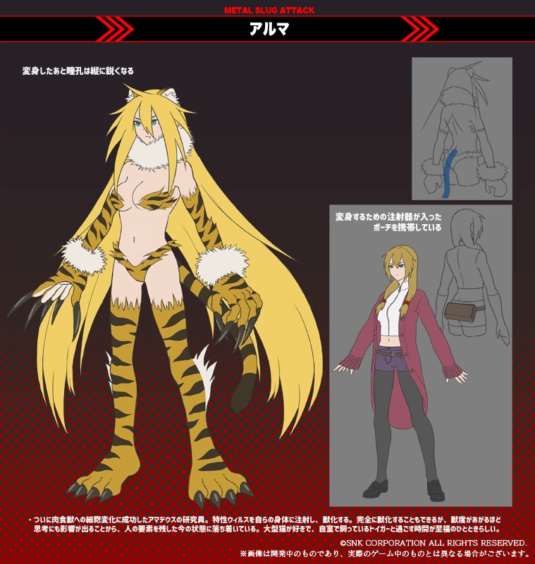 을 쫓아 행방불명이 된 아버지를 찾고 있다.메탈슬러그2에 등장하던 스콧 아문센의 손녀이자 스콧 아문센 주니어의 딸 [2]