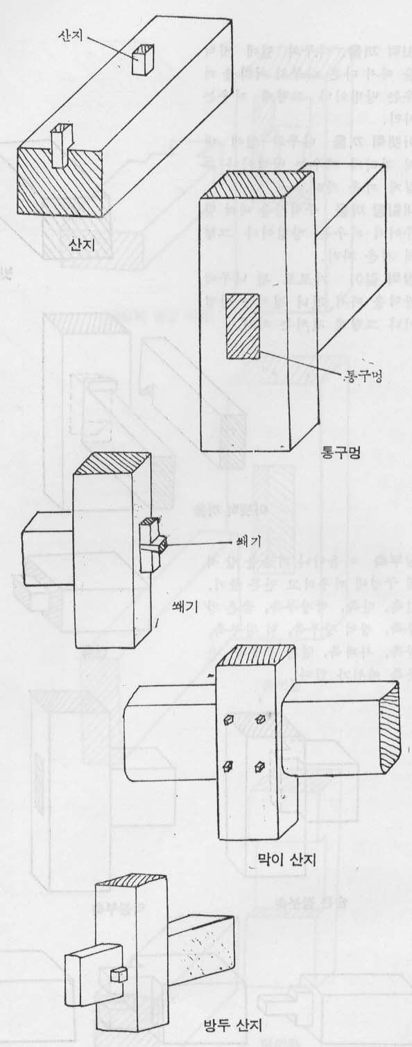 # # 한옥의 이음 방식. 서양 배의 촉꽃이 이음은 이 중 산지 방식이나 나비장 붙임과 비슷하다 보면 된다.