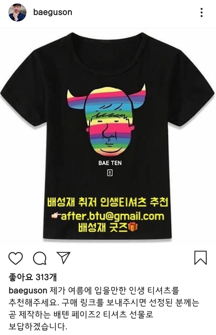 - 뚠티 : 배뚠뚠+티셔츠. 배성재가 자주 입는 시카고 불스 셔츠를 변형해서 배성재의 얼굴을 그려넣어 제작한 셔츠. 이렇게 생겼다.