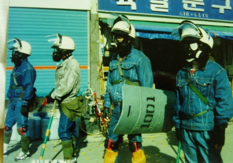 간이진압복은 97년 진압복 개선이전까지 전국의 사복중대에서 애용했다.