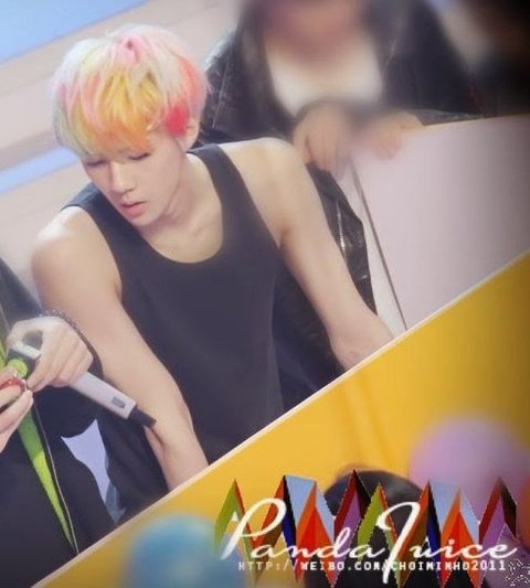 '''머리색을 가리지 않는 멤버로 유명해 염색 실험대상이 되기도 한다.''' 금발, 회색, 은발, 핑크색 등 도전하기 어려운 색깔은 물론 일명 '''무지개/앵무새 머리'''[39] 라고 불리는 괴상한 색깔들도 하얀 피부와 잘생긴 얼굴로 기가 막히게 소화했다는 평을 들었다. 광고로 인한 단기성이긴 했지만 녹색(짙은 브로콜리 색에 가까운) 같은, 독특한 염색을 시도했다.