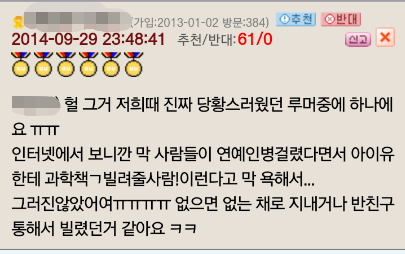 - 네이버 아이디는 qhqo37. 데뷔전 이 아이디로 지식인에 질문도 했으며 네이버 카페에도 이 아이디로 인증글을 남겼다. 그리고 이슈가 되자, 지식인은 지워졌고, 네이버 팬카페는 2009년에 마지막으로 답글을 단 뒤에 종적을 감췄다.[291]