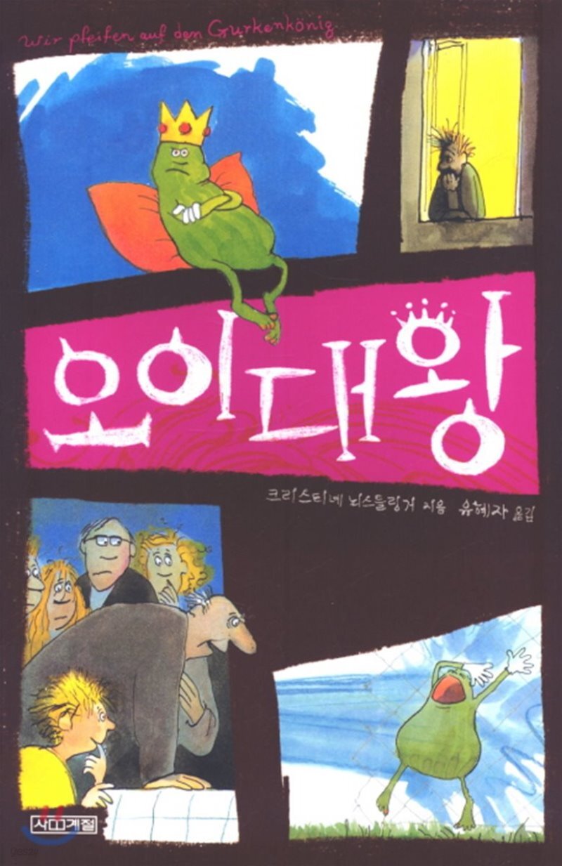 [3] 그림 묘사나 작중 설명을 보면 길이 50cm에 왕관을 쓰고 팔다리가 달린 녹색 오이처럼 생긴 괴생물체(...)라고 묘사되고 있다. 심지어 발엔 빨간 페디큐어까지 칠했다고 한다.[4] 원래는 외부에 알리려 했지만 사진이 찍히지 않는고로 증거가 남지 않아서 그냥 만져지는 귀신 비슷한 걸로 취급해버린듯.[5] 오이 대왕을 위해 썩은 감자를 늘상 준비해서 집에 썩은 감자가 넘쳐나는건 예사에, 무려 한 침대에서 매우 사이좋게 자는 광경까지 묘사되는 수준으로 오이 대왕을 엄청 친애한다.[6] 엄마가 숨긴 것.[7] 장녀 마르티나의 것. 심지어 오이 대왕은 마르티나와 바람둥이 남자친구가 싸우는 것까지 엿듣기도 했는데 이를 보고 화가 난 볼프강이 호스로 물세례를 퍼부어 쫓아내기도 했다.[8] 주인공 볼프강이 숨긴 것.[9] 오래된 집의, 흙이 있는 지하실에서 기거하는 오이 비슷한 괴생물체로 오이 대왕도 여기에 속해있다.[10] 파릇파릇한 녹색의 오이 대왕과 달리 다른 쿠미-오리들은 칙칙하고 어두운 색이나 일을 많이 해서인지 손이 훨씬 두텁다고 묘사된다.[11] 볼프강이 성적표를 숨긴게 '아버지의 사인을 성적표에 받아와야 하는데' 그랬다간 나쁜 성적의 성적표를 아버지에게 들킬게 뻔하니 무서워서 계속 감춰왔던 것. 이에 어머니난 아빠 사인만 사인이냐? 나도 부모니까 사인을 해주겠다, 선생이 안 된다 하면 내가 나서겠다! 하고 말해준다.[12] 피를 흘리긴 했지만 그 이상의 신체 손상은 없었다. 두 직원은 쥐 같은 것에 물려서 그랬다고 생각했다. 사실 이 부상은 보험 회사 지하실에 살던 쿠미-오리 변종에게 아버지가 입은 상처로, 이런 콘크리트 지하실에서 사는 쿠미-오리 변종은 몸이 하얗게 변하고 자아나 언어능력도 잃어버리며 마치 쥐같은 것처럼 살게 되는데다 공격성까지 올라가게 된다고.[13] 볼프강은 이를 깨달은 후 닉이 좀 컸다는 느낌을 받게 된다.[14] 아버지는 이 말을 들은 후 결국 오이 대왕을 찾지 않게 된다.[15] 책을 영상물로 만든 버전에선 닉이 오이 대왕을 갖다버리는 장면까지만 나오고 그 후는 보여주지 않은 채로 끝난다.[16] 주인공 가족의 성씨.[17] 번역본에서 성이 중도에 언급되는데 '호겔만' 이다. 다만 스스로 소개할 땐 성을 언급하지 않는다.[18] 이거 때문에 성적이 나빠져서 유급위기에 처하긴 했다.[19] 아래 기술된 하슬링거 선생 건으로 사람한테 장난쳤다가 예상 외로 엿먹어본 이후엔 장난을 좀 자제하게 된듯.[20] 얼굴에 물풍선을 던지는 식으로 망신을 줬다. 물론 반성은 하지 않았다.[21] 원문을 보면 은근 볼프강도 책임회피적 성향이 강하다는걸 알 수 있는데 예전에 친구들과 함께 엿먹이던 남자가 담임으로 부임했다는걸 알자 '망했다! 그런데 하필 왜 내 반에 오는거야? 저 양반 괴롭힌 애들은 나 말고 다른 반에도 있잖아!' 하는 식으로 생각할 뿐 반성이 없다.[22] 심지어 볼프강에겐 매우 처치곤란의 문제인 수학 성적표까지 까발려버렸다.[23] 오이 대왕이 누나랑 누나 남자친구의 대화를 엿듣는걸 알아서 짜증난 것도 있었다[24] 이에 볼프강도 누나의 맘에 상처를 준 누나의 바람둥이 전남친 알렉스에게 욕을 퍼부어주기도 하면서 누나와 좀 더 가까워진다.[25] 하슬링거 선생이 볼프강을 신경쓰던건 과거의 그 물풍선 사건 때문에 볼프강이 미워서가 아니고, 그냥 수학 성적이 안 올라가서였다고 한다. 이 선생은 볼프강의 점수가 젊은 선생이 잠시 자기 자리를 맡은 후 올라가서 내 교육법에 문제가 있나...하고 자책하던 찰나였는데 볼프강이 누나랑 공부하면서 열심히 노력했다는걸 밝히자 노력 없는 성공은 없다며 순수하게 기뻐하는 등 사실 좋은 사람이었다.[26] 늘 특정 시기에 소풍을 가야 하는걸 고집하며 딸(마르티나)가 이성 친구를 사귀는 것과 비키니 입는 걸 못마땅하게 여긴다.[27] 삽화에선 소개 부분부터 표정이 혼자 밝질 않고 좀 어두운데, 처한 상황과 성격 탓인듯.[28] 볼프강은 과거 자신도 그러던 시절이 있어서 아버지와 닉이 노는 걸 보고 '저런 것도 얼마 안 가 끝날거다' 하는 식으로 생각하기도 했다.[29] 오이 대왕을 비롯한 쿠미-오리들의 식량이다.[30] 닉은 아버지 외에 오이 대왕에게도 친근감을 느끼고 있는데다 내심 손윗남매들에게 소외당하는 처지여서 잘 놀아주는 아버지를 더 좋아할 수밖에 없었다.[31] 그러나 아버지의 이런 행동은 혁명으로 독재자 폭군이었던 자신을 몰아낸 쿠미-오리들에게 복수하고자 하는 오이 대왕의 계략에 '수단' 으로써 이용당한 것에 지나지 않았다.[32] 한편으로는 초등학생인 닉도 아니고 중년에 학식이 크게 모자란 것도 아닌 볼프강의 아버지가 오이 대왕의 말을 너무 쉽게 믿어버린 것에 의문을 드러내는 독자들도 있다. 정황상 초반에 아버지가 오이 대왕을 보자마자 바로 존재 자체를 부정하려드는걸로 봐서 미신이나 초현실적인 걸 잘 믿는 타입은 아니라고 할 수 있지만, 오이 대왕의 존재를 인정하고 나선 그럴 수도 있는거라고 퉁쳐버린듯(...) 게다가 오이 대왕이 주겠다는 사장 직을 탐냈기에 오이 대왕과 거래까지 한 걸로 봐서 내심 승진에 대한 욕구가 무척 강했던 찰나에 오이 대왕의 발언에 혹했다고도 