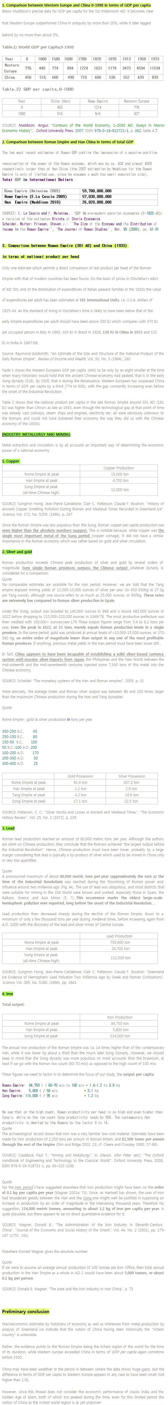 중국은 주로 동화를 사용했으며 고대 중국에선 은의 사용이 그렇게 활발하지 않았던 것으로 보인다. 당장 금은의 생산량 또한 동시기 서유럽에 비해 매우 적은 수준이었으며 금은의 교환비가 1:10을 넘고 생산 역시 1:4 수준이었던 고대 유럽 경제에 비해 고대 중국의 금은 생산 비율은 1:2 수준이었고, # 금과의 교환비 역시 1:5 정도에 불과했다.# 어쨌거나 또한 중국 역시 전란이나 경제발전으로 금속화폐 경제가 붕괴하여 이와 비슷한 상황을 맞이할 뻔했으나, 북송대 교자, 회자 등 지폐가 활성화되면서 금속화폐의 위치를 어느 정도 대체할 수 있었던 것으로 보인다. 다만 자급자족적인 동아시아 경제에서 상업이 차지하는 비율은 흔히 말하는 자본주의 맹아론적인 수준은 되지 못하기도 하고, 무엇보다 원나라대 지폐인 교초의 남발로 한동안 화폐 경제 자체가 붕괴해버린 탓에 일단 망했어요.
