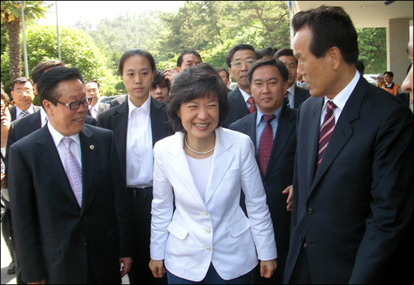 그 시절 이정현의 위치를 잘 알 수 있는 사진 중 하나. 왼쪽 구석에 깨알같이 등장한다. 박근혜 대표 왼쪽의 인물이 바로 임두성[7]으로, 이 사진이 찍힌 2007년 5월에서 1년이 지난, 2008년 18대 총선에서 비례 2번을 받았다. 이정현이 그 선거에서 비례 22번으로 국회의원이 된 걸 생각하면, 저렇게 찍힐 정도로 박근혜의 지근거리에 있었으니까 비례 22번이라도 받은 게 다행일 정도였다.[8]