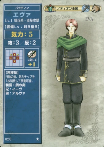 클래스는 소셜 나이트→팔라딘. 역시 성기사단 그륜릿터의 일원으로 노이쉬, 아단과는 친구사이. 시원시원한, 나쁘게 말하면 다소 가벼운 성격을 가진 인물이나 실력은 확실히 인정받는 것 같다.전통의 '적녹기사' 중 녹기사 담당. 상대적으로 기술/속도의 성장률이 높은데 정작 뜯어보면 힘-기술-속도 30%-40%-30%의 애매한 스탯이라 추격이 있음에도 그리 시원시원한 전투는 못 보여주는 편. 유독 상식 이상의 괴물이 넘쳐나는 성전인지라, 이 둘은 시리즈 최약의 적녹 타이틀을 가지고 있다(...).