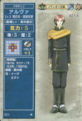 클래스는 아치 나이트→보우 나이트. 에딘을 시중드는 융그비의 궁기사. 자신이 모시는 에딘을 짝사랑하고 있다. 초반 궁병답게 그냥저냥 성실하고 무난한 성격이다.처음부터 나오면서 간접 공격이 되는 기병이라는 점만 보면 엄청나게 유용할 것 같은데, 정작 성장률이 알렉의 하위호환 수준이다. 알렉 자체가 약간 낮은 밸런스형인 걸 감안하면 이건 거의 1부 최악의 성장률 수준. 대신 스킬인 추격/돌격은 완전히 무스킬로 나올 자식들에게는 매우 좋은 조합이다[2]. 노이쉬, 알렉과 마찬가지로 전투보다 커플링에서 평가가 좋은 캐릭터.